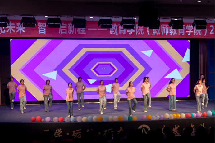 毕业生代表陈芷伊、张思韵、童诗瑜等人带来的舞蹈《new boy》,传递了告别过去、拥抱新生的蓬勃朝气与无限憧憬。舞台上灯光如群星闪烁,动感的电子节拍和活力四射的舞姿燃翻全场。