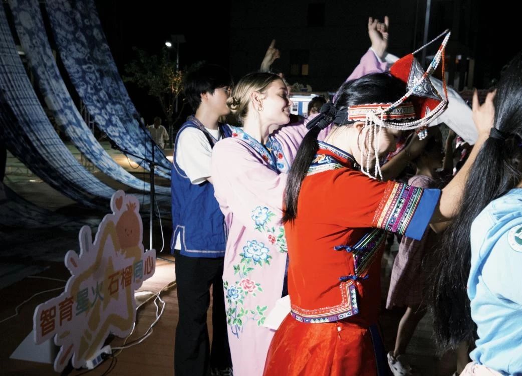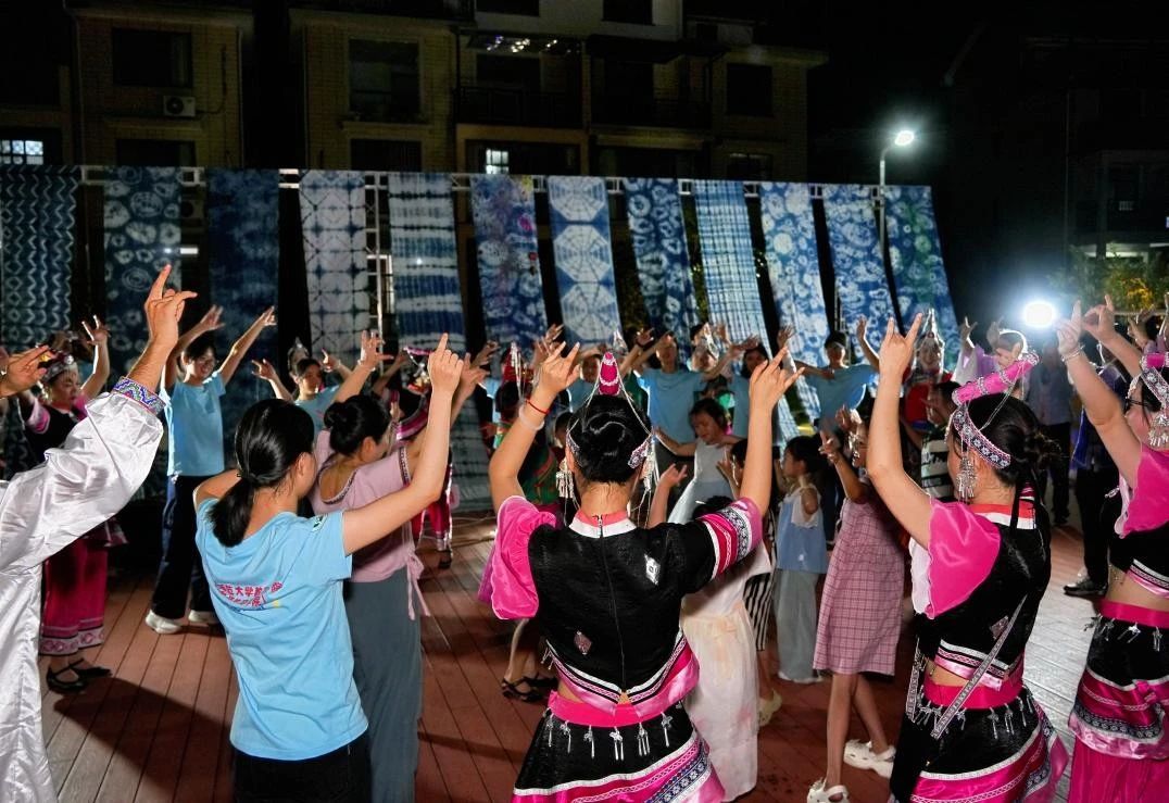 畲乡的夜晚依旧热闹,文化的交融从未停歇。从歌声里的深情对唱到舞步中的默契配合,从技艺传承中的守望相助到日常交往中的真诚相待,这场夏夜盛会以接地气的集市形式,展现了畲乡文化的独特魅力,也推动了当地人民与青年学子、传统文化爱好者深入交流。“智育星火 石榴同心”实践队不仅全程见证了这一幕幕和谐交融的场景,更以实际行动积极参与其中、促进交融。实践队队员们初至时的那份热忱与使命,在这片充满活力的热土上稳稳扎根,静静生长。