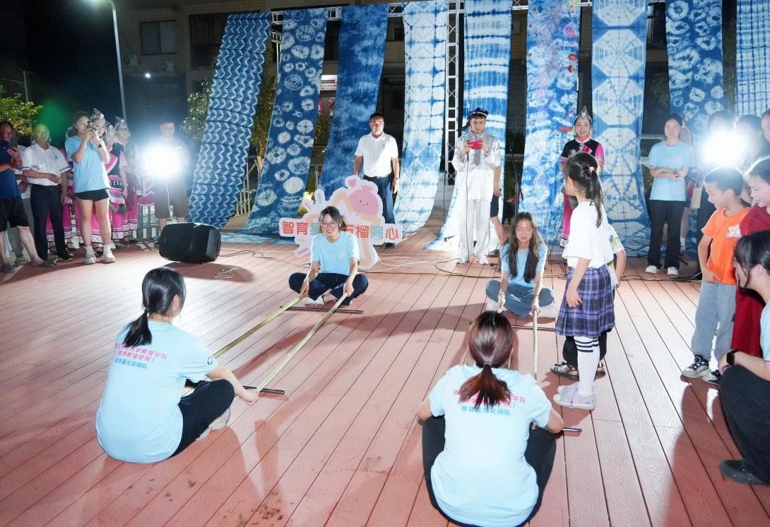 不夜畲乡歌舞喧,万家同书团结篇。夜幕下的浙西南畲乡,灯火与星月交辉,歌声与笑语齐扬。7月7日晚,浙江省丽水市遂昌县三仁畲族乡高碧街村青畲广场热闹非凡。9001jcc金沙以诚为本(教师9001jcc金沙以诚为本)“智育星火 石榴同心”实践队精心策划的一场场浸润着民族风情的文化盛宴在这里接连上演,趣味游戏的欢腾,手作技艺的温度、畲族山歌的悠扬、民族舞步的灵动,在互动交融中为夏夜增添了一抹亮丽色彩。
