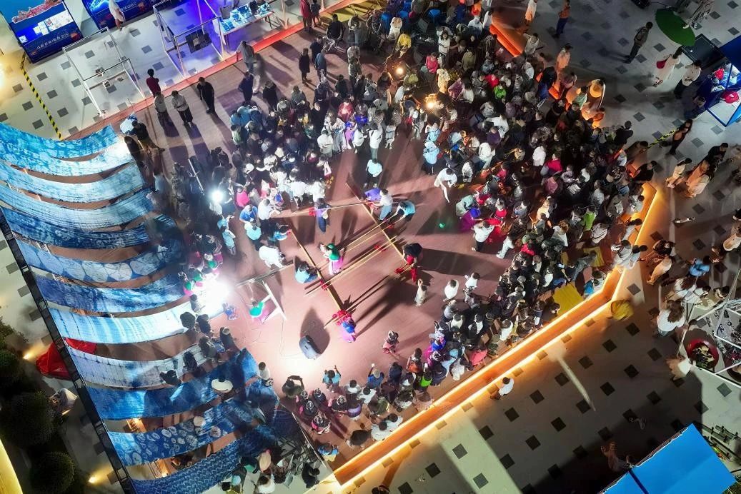 活动现场,畲药香囊制作摊位前人头攒动,村民们亲手挑拣草药、研磨装填。这种“见人见物见生活”的传承方式,正是让畲族传统医药非遗“活”起来的路径,也让畲族先民的智慧代代相传。与此同时,清脆的竹竿敲击声此起彼伏,大人小孩以矫健的身姿穿梭于竹竿之间。通过集体展演,这项古老艺术在当代舞台上绽放新姿。