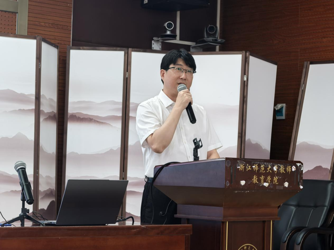 林一钢代表学院向2025级全体博士研究生致以最热烈的欢迎与最诚挚的祝贺。他从历史脉络、学科建设、科研能力以及人才培养等方面介绍了学校以及学院的基本情况。他勉励同学们要心怀“三个真”:做真学问、下真功夫、有真成效。最后,他祝愿大家在浙师开启人生新篇章,成为学术底蕴深、分析问题透、创新能力强、真知灼见多的优秀博士研究生。