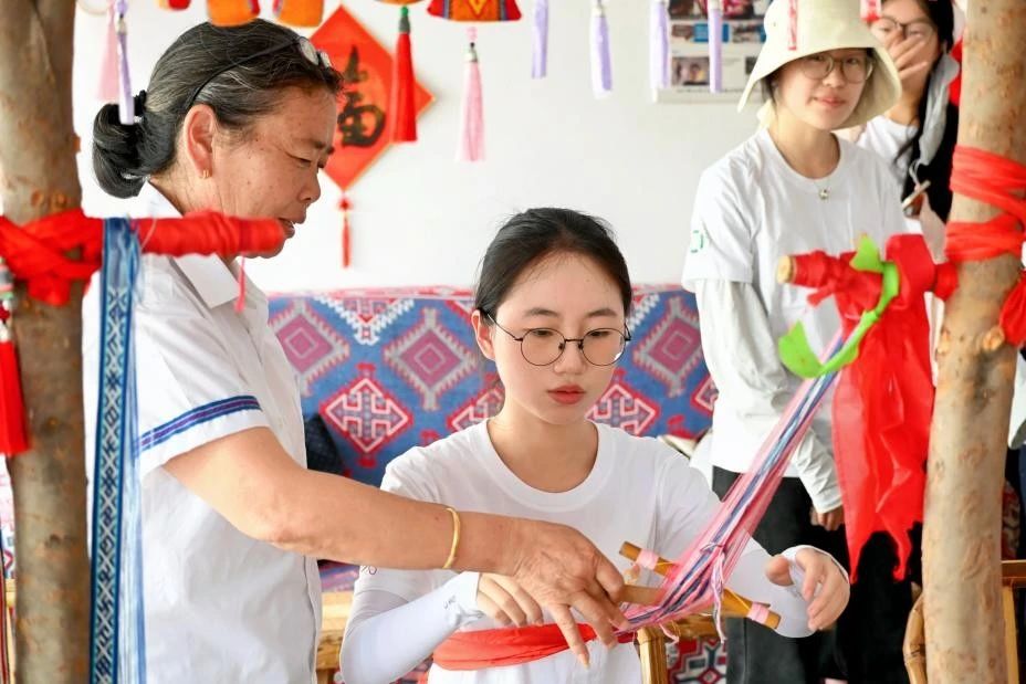走进好川村三公主编织工作室,县级非物质文化遗产“畲族字带编织”传承人蓝水钗热情邀请实践队员体验制作融合现代元素的畲族纹样文创产品。“我们将传统‘万字纹’和‘凤凰纹’设计成手机壳、帆布包等潮流单品,这样既能保留文化底蕴,又能让更多的年轻人接受和爱上畲族文化。”蓝水钗这样介绍自己的创新理念。