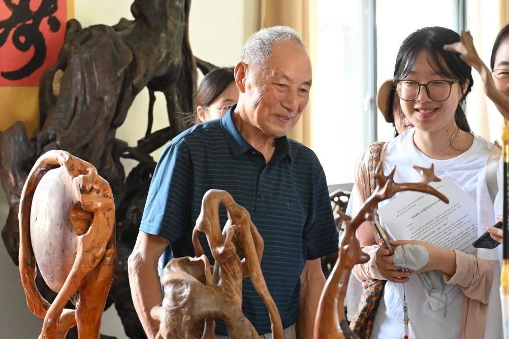 在好川根艺馆,实践队员与深耕根艺四十余载的传承人宋樟才老师进行深入交流。他提到:“如今根艺销售仍以客人亲临选购为主,电商尝试收效甚微。村委会虽缺资金支持,却积极通过宣传推介,助力这门手艺被更多人知晓。”宋老师希望借助更灵活的推广方式打开销路,让根艺走进更多人的生活,同时希望这门融合畲汉文化的手艺能吸引更多的年轻人传承,让好川根艺在保护与创新中走得更远。