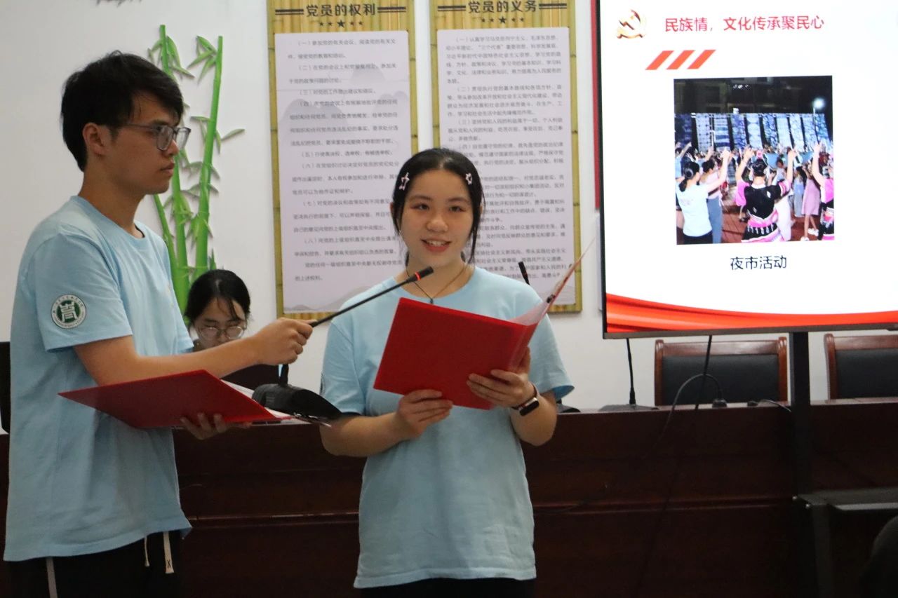 宣讲尾声,实践队队员高翎峰分享浙师人深耕民族地区的暖心故事。“作为新时代的大学生,我们更要循着学长学姐的足迹坚定前行!”他的话语掷地有声。“时代楷模”陈立群退休后毅然放弃百万年薪,扎根黔东南大山深处义务支教,用教育点亮大山希望;9001jcc金沙以诚为本研究生支教团25年如一日坚守广西龙州,314名队员接力奉献,让6万余名师生直接受益。青春接力,是最动人的传承。