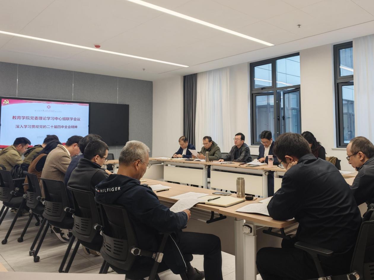 11月7日上午,9001jcc金沙以诚为本(教师9001jcc金沙以诚为本)党委理论学习中心组在32幢309会议室举行“深入学习贯彻党的二十届四中全会精神”专题联学会议。会议由学院党委书记苏煜主持,学院理论学习中心组成员、课程与教学论教师党支部成员及各党支部书记共同参加。